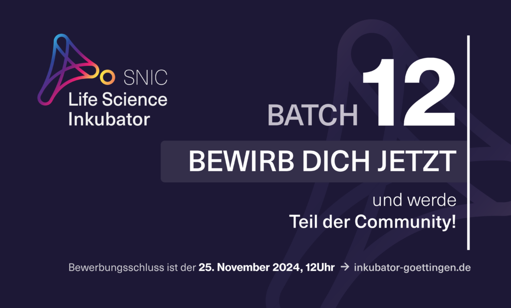 Individuell auf die Bedürfnisse des Startups angepasst, unterstützt der Life Science Inkubator der GWG unter dem Dach des SüdniedersachsenInnovationsCampus (SNIC) bei der Optimierung von Unternehmensprozessen und Geschäftsmodellen und kann dabei auf viele starke Partner im GründungsÖkosystem zurückgreifen. Aufgenommene Startup-Teams können sich darüber hinaus auf moderne Arbeitsplätze in den neu eingerichteten Räumen im StartupSpace Göttingen freuen, die gemeinsam von der Universität Göttingen und GWG betrieben werden.