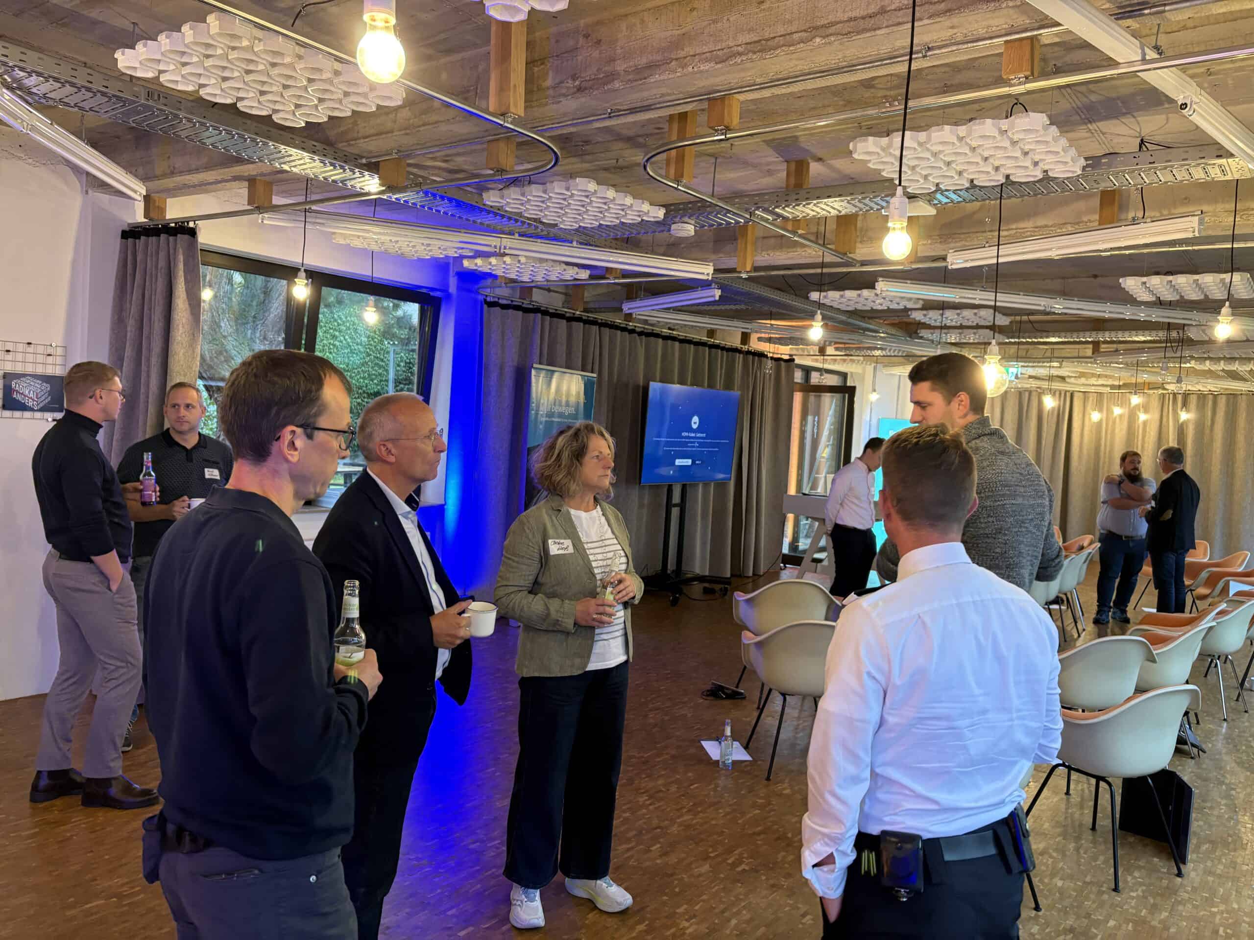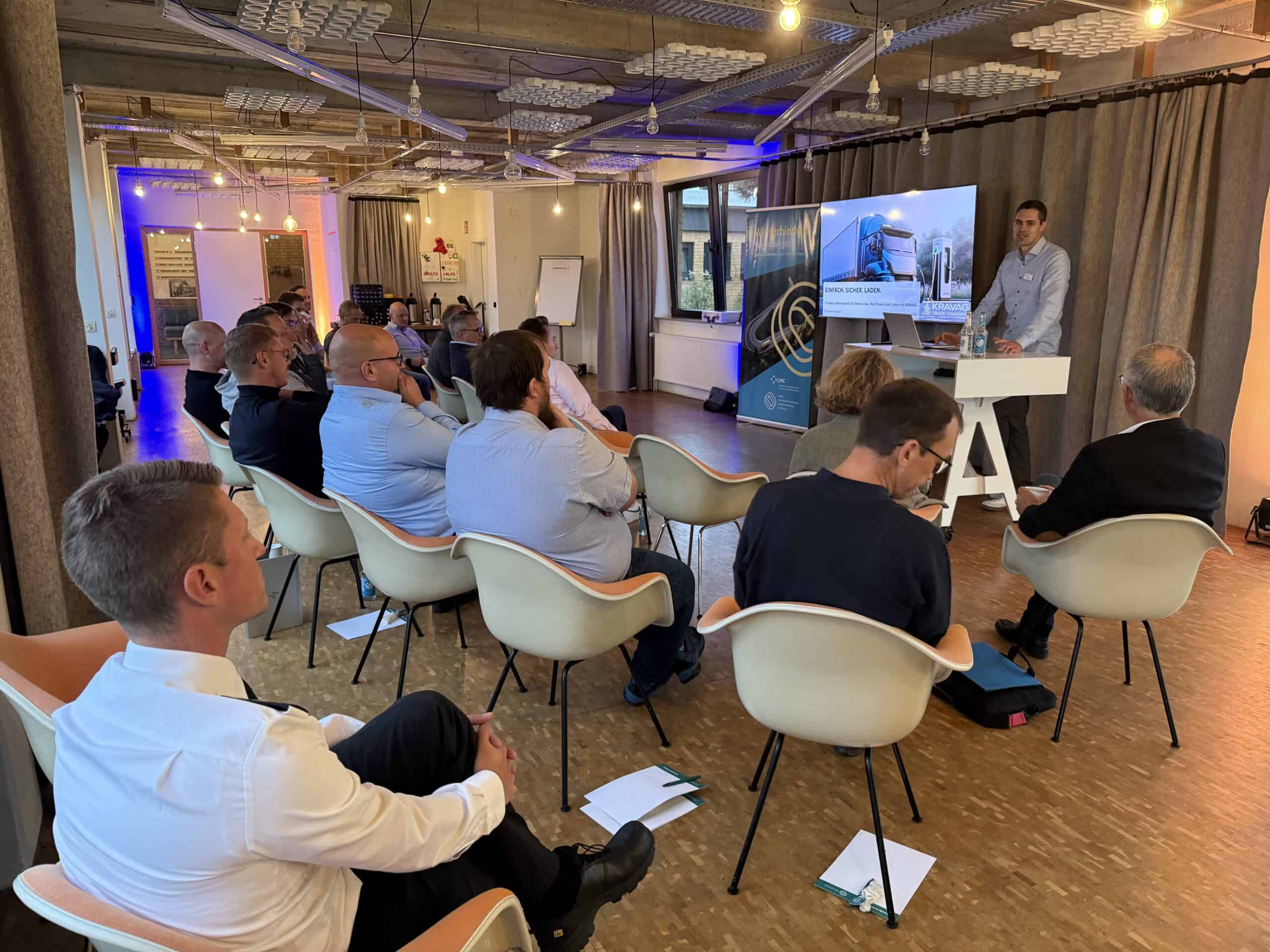 Während der Vorstellungsrunde aller 21 Teilnehmenden beim ersten Treffen, begleitete uns die Frage: „Warum sind Sie heute hier und was erwarten von diesem Termin?“ Ab diesem Zeitpunkt begannen bereits der direkte Dialog und fachliche Austausch. Anschließend folgten Impulsvorträge seitens der Spedition ZUFALL, der GöVB, der EAM und der KRAVAG zum Thema „Truck Charing“. Nach so viel Gesprächsstoff wechselten alle Gäste in die Küche. Dort wurden die Themen noch weiter vertieft und bei einem kleinen Imbiss mit Getränken ausführlich diskutiert.