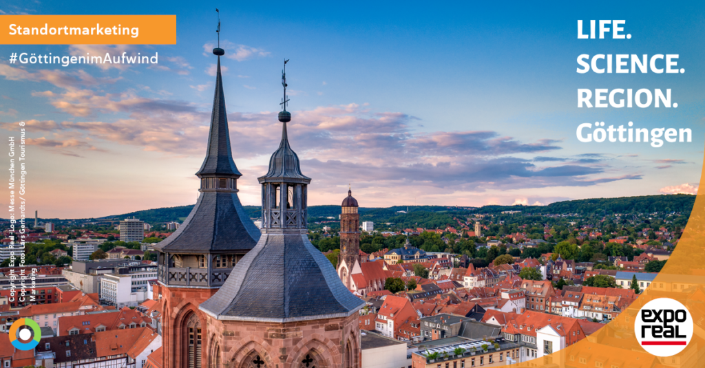 Auch in diesem Jahr wird sich die LIFE.SCIENCE.REGION.Göttingen mit seinen Entwicklungsmöglichkeiten der EXPO REAL, der Leitmesse für Immobilien und Investitionen präsentieren. Dabei übernehmen die Wirtschaftsförderungen der Stadt und des Landkreises Göttingen die Koordinierung, Organisation und Umsetzung. Unternehmen haben dabei vielfältige Möglichkeiten diese Präsenz für ihre unternehmerische Tätigkeiten zu Nutzen.
