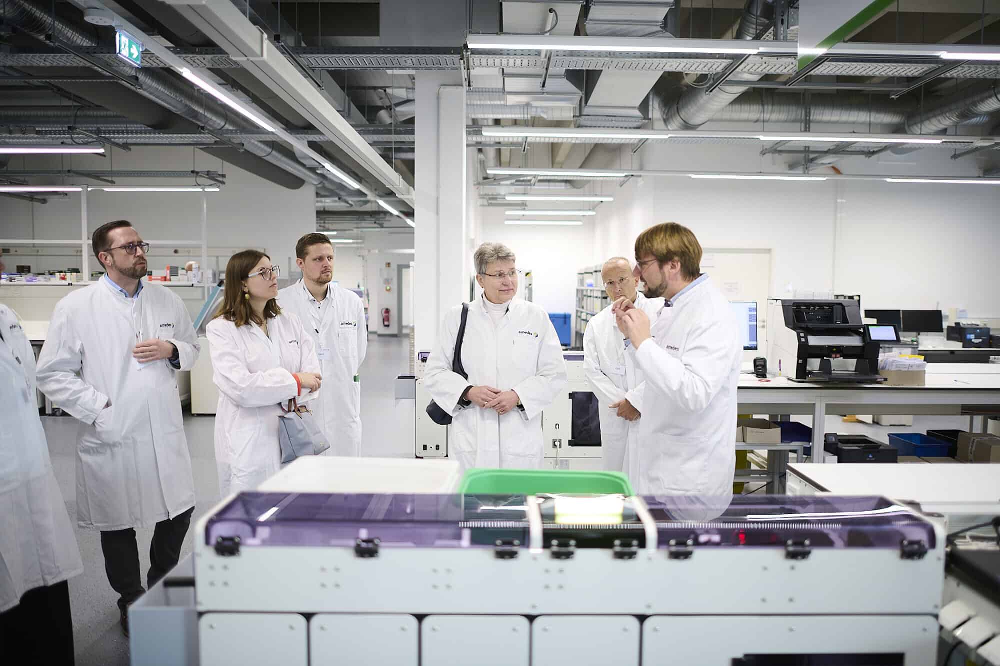 Oberbürgermeisterin Petra Broistedt zeigte sich beeindruckt vom hochmodernen Labor und hob die Bedeutung des Austauschs hervor: „Die Gesundheitsversorgung unserer Stadt lebt von starken, engagierten Partner*innen. amedes zeigt mit dem neuen Labor eindrucksvoll, wie moderne medizinische Infrastruktur, wissenschaftliche Expertise und wirtschaftliche Entwicklung zusammenwirken können. Für unseren Life-Science-Schwerpunkt ist das von zentraler Bedeutung – es stärkt die regionale Versorgung, schafft qualifizierte Arbeitsplätze und trägt zur Attraktivität des Standorts Göttingen bei.“